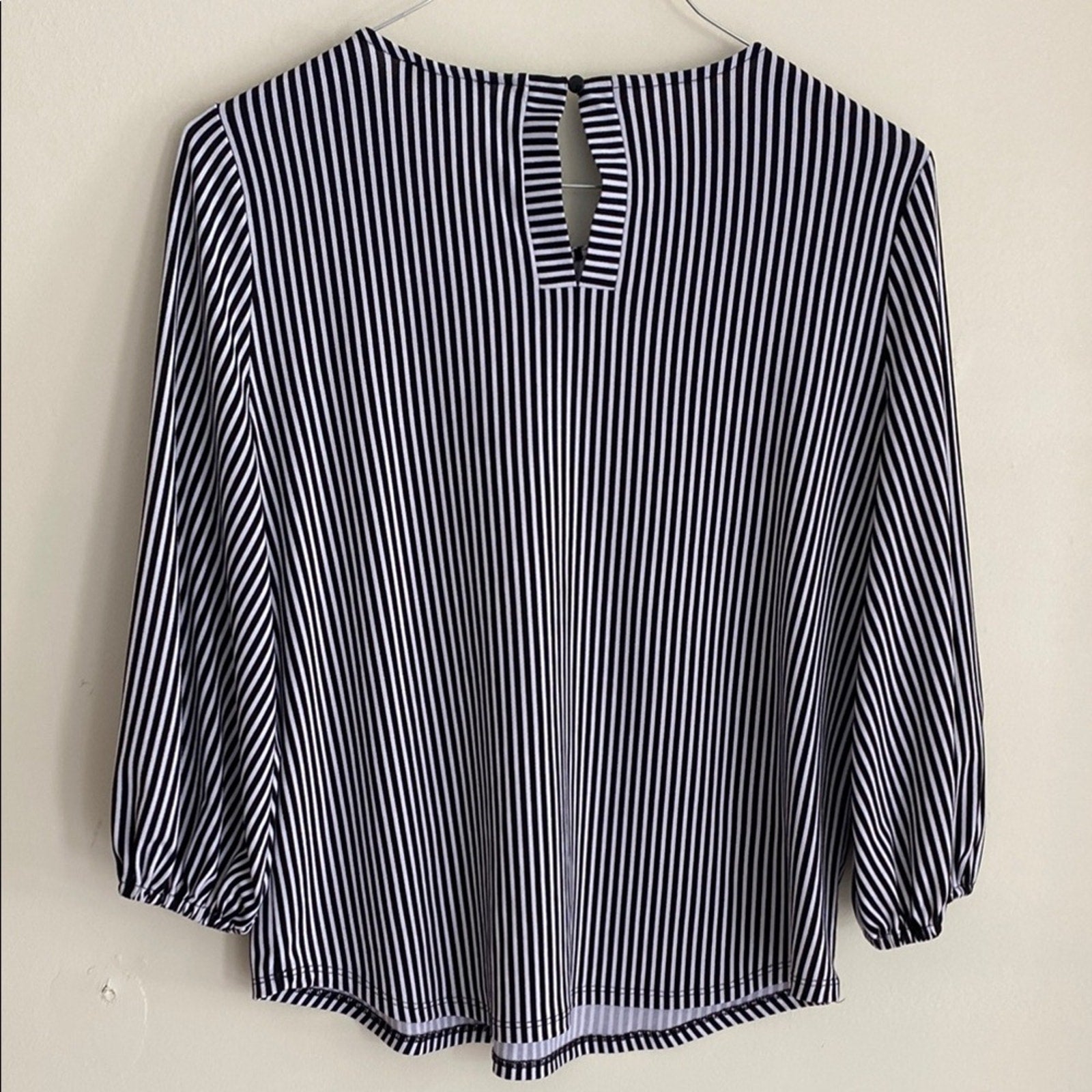 Adrianna Papell Blue and White Blouse with Bib Collar and 3/4 Sleeves