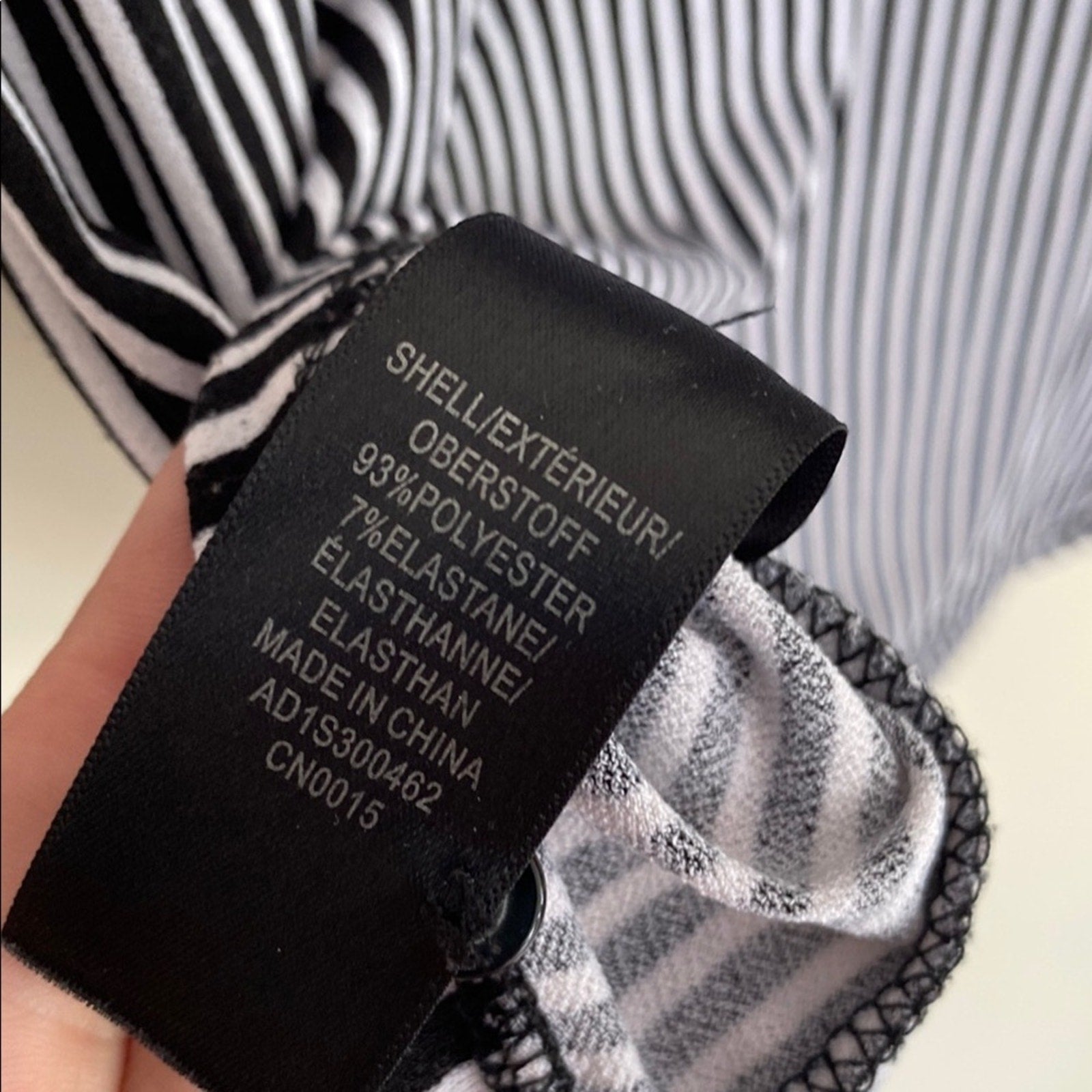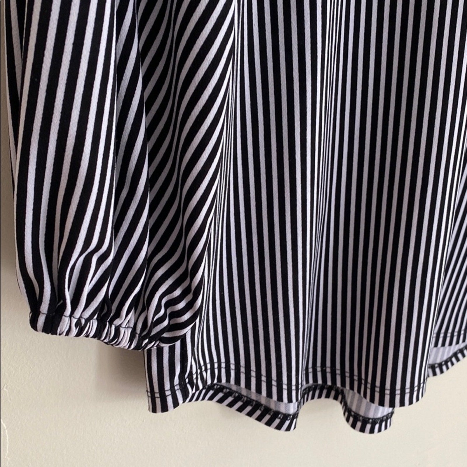 This relaxed blouse features a bib collar and 3/4 length sleeves, offering a comfortable yet stylish look. The vertical blue and white stripes add a classic touch, making it suitable for both casual and business casual settings. Its lightweight fabric ensures a flowing silhouette that flatters any figure.