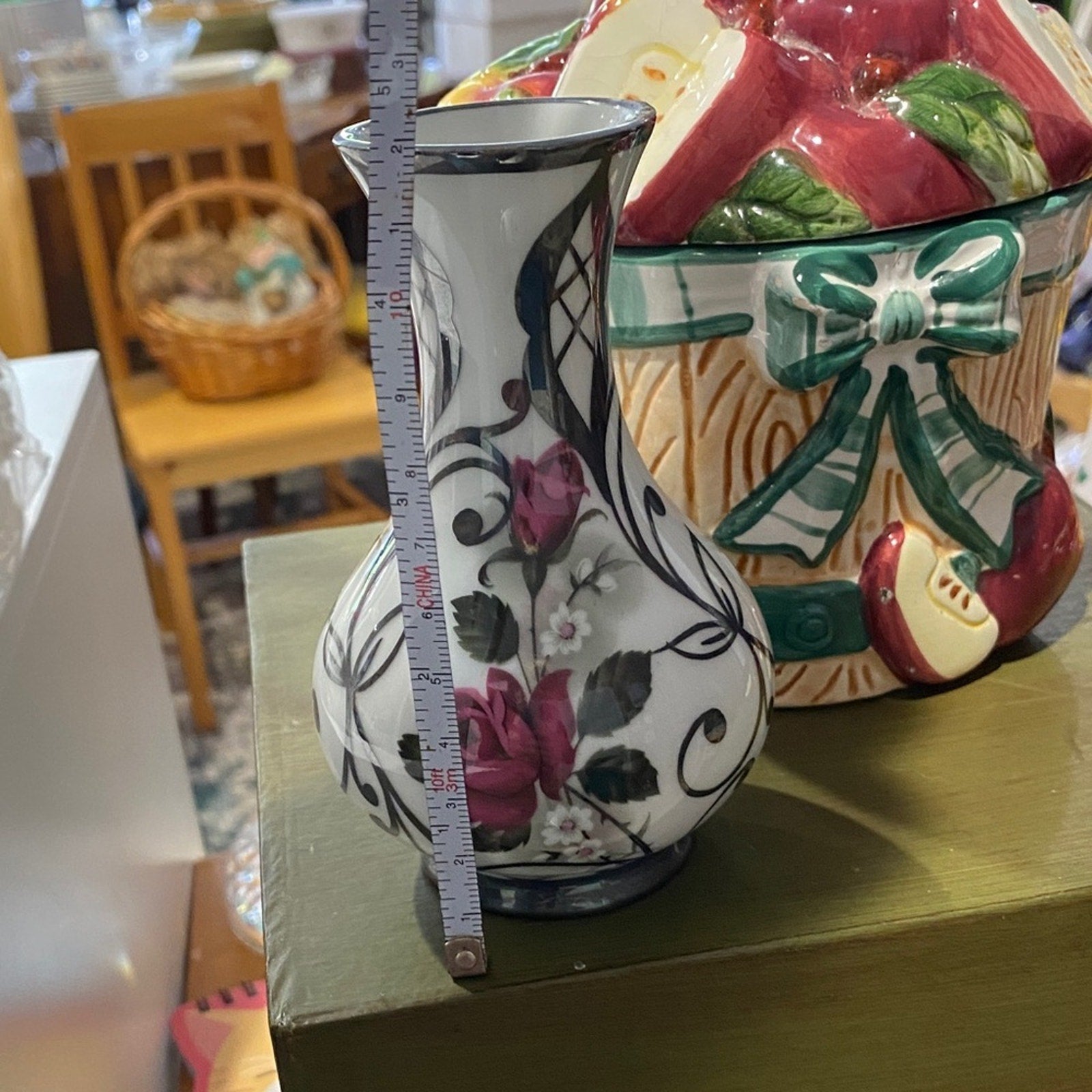 Elegant Floral Vase with Red and Green Accents Bohemia Bone China