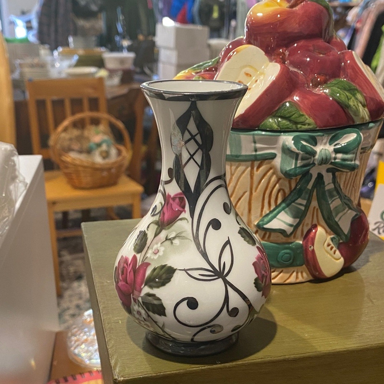 Enhance your home decor with this elegant floral vase, featuring beautiful red and green accents. Perfect for adding a touch of sophistication to any room.