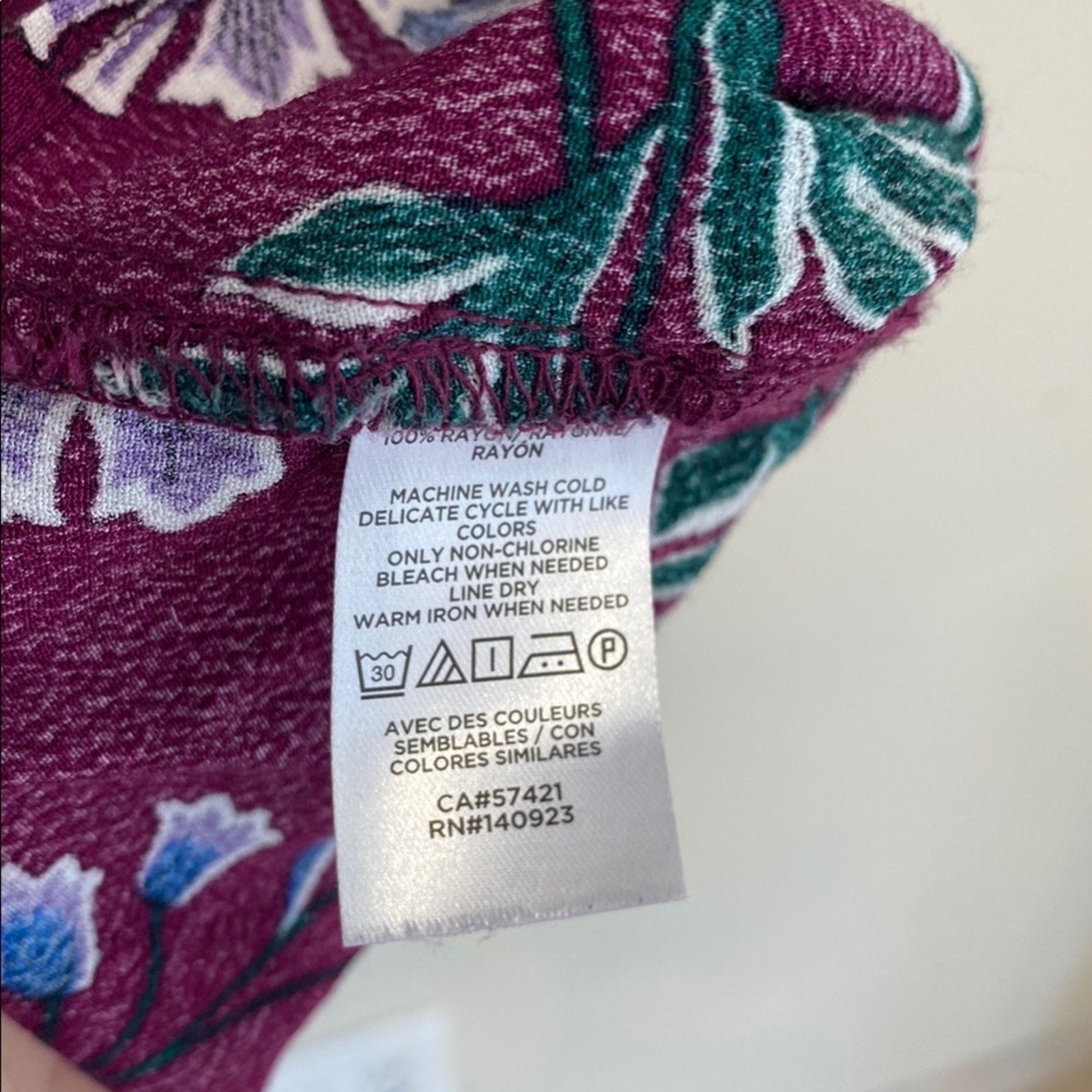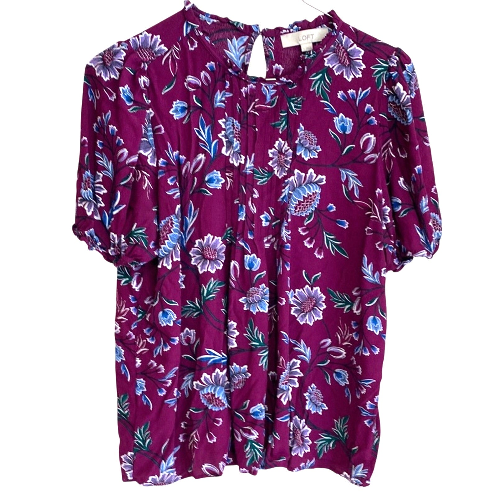 LOFT Red and Blue Pleated Short Sleeve Blouse Large