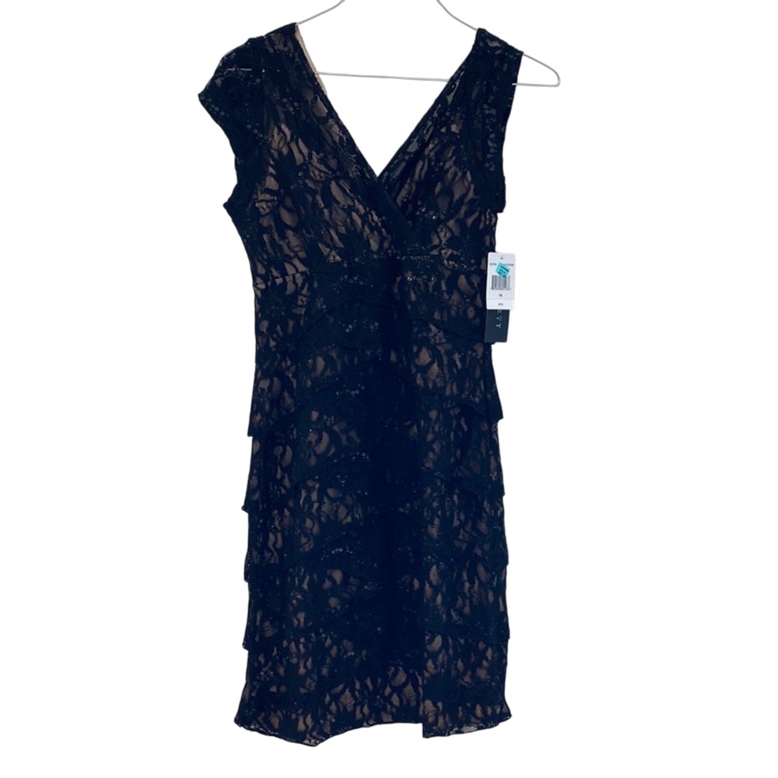 This stunning black sheath mini dress by Scarlett is designed for cocktail parties and nights out. It features a sleeveless, form-fitting silhouette with a flattering V-neckline, enhanced by an elegant lace overlay. The sophisticated design and rich color make it a standout choice for any evening occasion.
